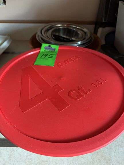LOT 195 - Pyrex stacking bowls with lids, stainless steel, stacking bowls