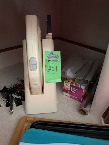 LOT 201 - Electric knife, clips, and plastic bags