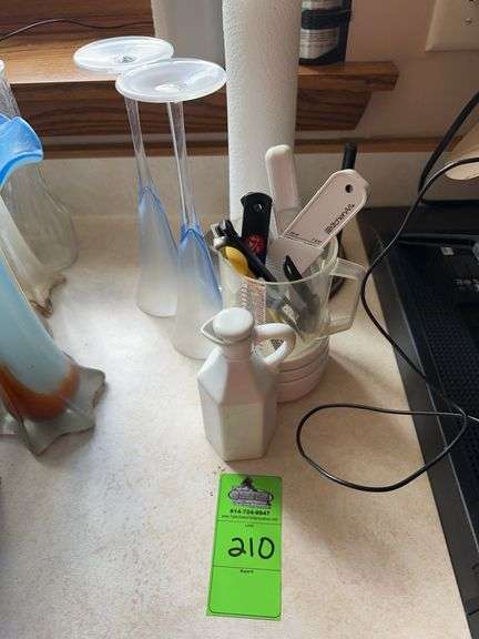 LOT 210 - Two champagne flutes, miscellaneous kitchenware