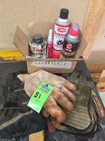 LOT 51 - Gloves, brake parts cleaner, joint compound, garage door lube