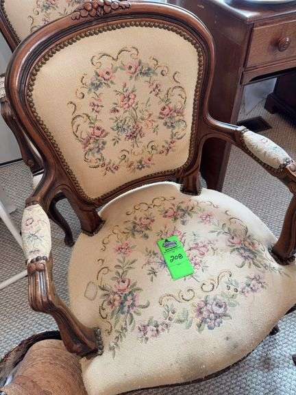 LOT 208 - Antique wooden chairs with fabric covering