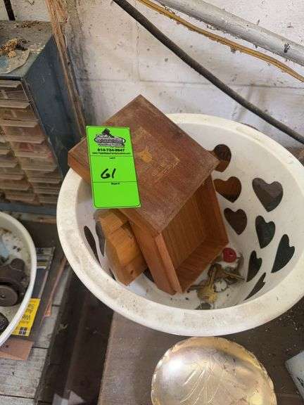 LOT 61 - Miscellaneous one drop leaf table, one handmade table, nut, and bolt bins timer bench vice